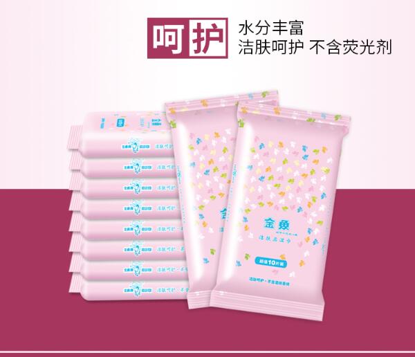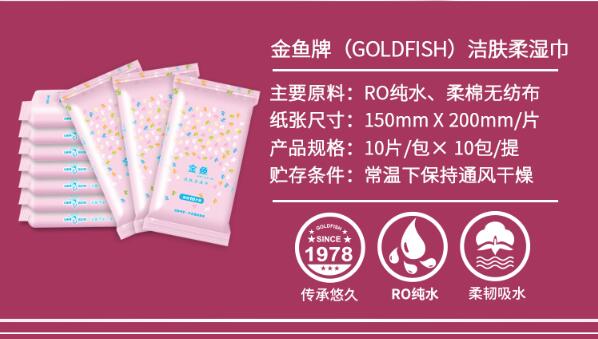 JS21101 | 金鱼牌 洁肤湿巾 | 150mmX200mm | 10片/包 10包/提 | RO纯水 柔绵无纺布 |